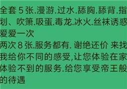 刚刚体验回来分享给大家,300一次时间40分钟左右,特殊项目(需要加米)有:肛加,ko爆,回龙萧加,玩具,也可以在特殊项目里选哪一项,姐姐服务态度特别好,很温柔,不嫌烦,服务项目不含糊,陪浴后擦身后直...
